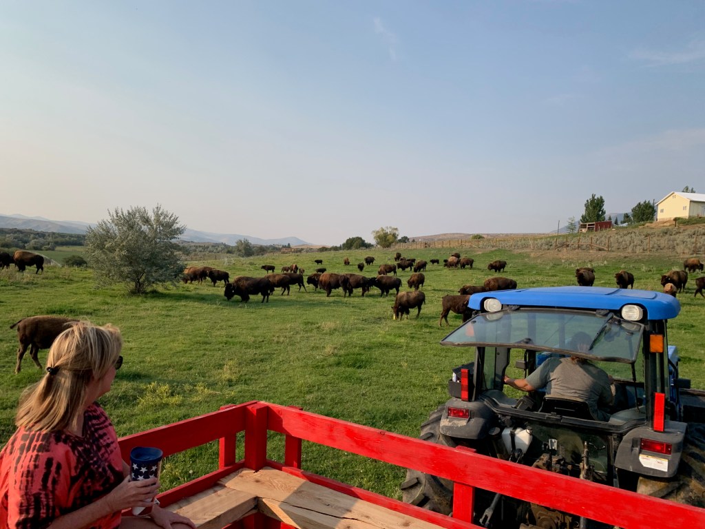 Errands in Idaho Falls were completed successfully and we were on our way to Diamond P Grassroots Bison farm in McCammon, ID. We knew that this Harvest Host offered wagon rides to see bison and also had bison meat for sale, but what we didn’t know was that Jenny and Rob would be amazing hosts. Jenny was so welcoming and engaging from the very beginning of our stay, sharing her stories about how they ended up running a bison farm. 🦬