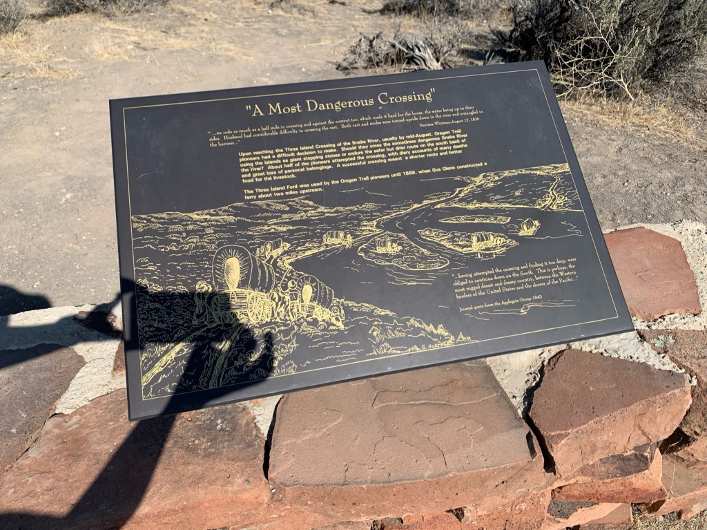 We later found a road that took us through the middle of this fenced area and parked there, found a sign that discussed how dangerous the river crossings were for the initial travelers along the Oregon Trail, and set off from there on a trail to see if we could make our way to the river. Eventually, we came across a fence that cut off any access to the river. Where we found part of the original trail notated in All Trails, we encountered indications that the fence had been cut so that people could travel through where the trail originally took you north to the river, but the fence had been mended.