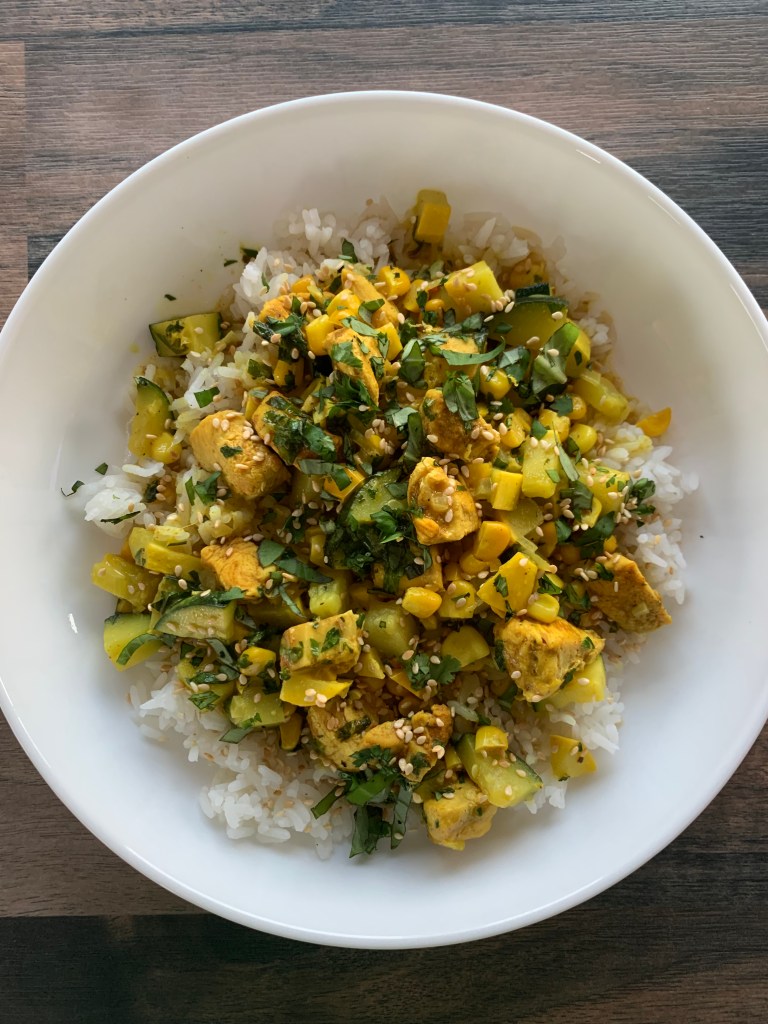 After discovering there were more recipes related to the Half Baked Harvest cookbook by Tieghan Gerard online, I decided to try out another one of her recipes: Spicy Coconut Basil Chicken Curry with Garden Vegetables. I was craving curry, but wanted something with a nice balance of vegetables and protein that I could serve over rice. Matt doesn’t like that much heat, so I backed off the amount of cayenne the recipe called for, opting for 1/8-1/4 teaspoon. Otherwise, I left the recipe as is, think it had balanced flavor, and I would make it again.