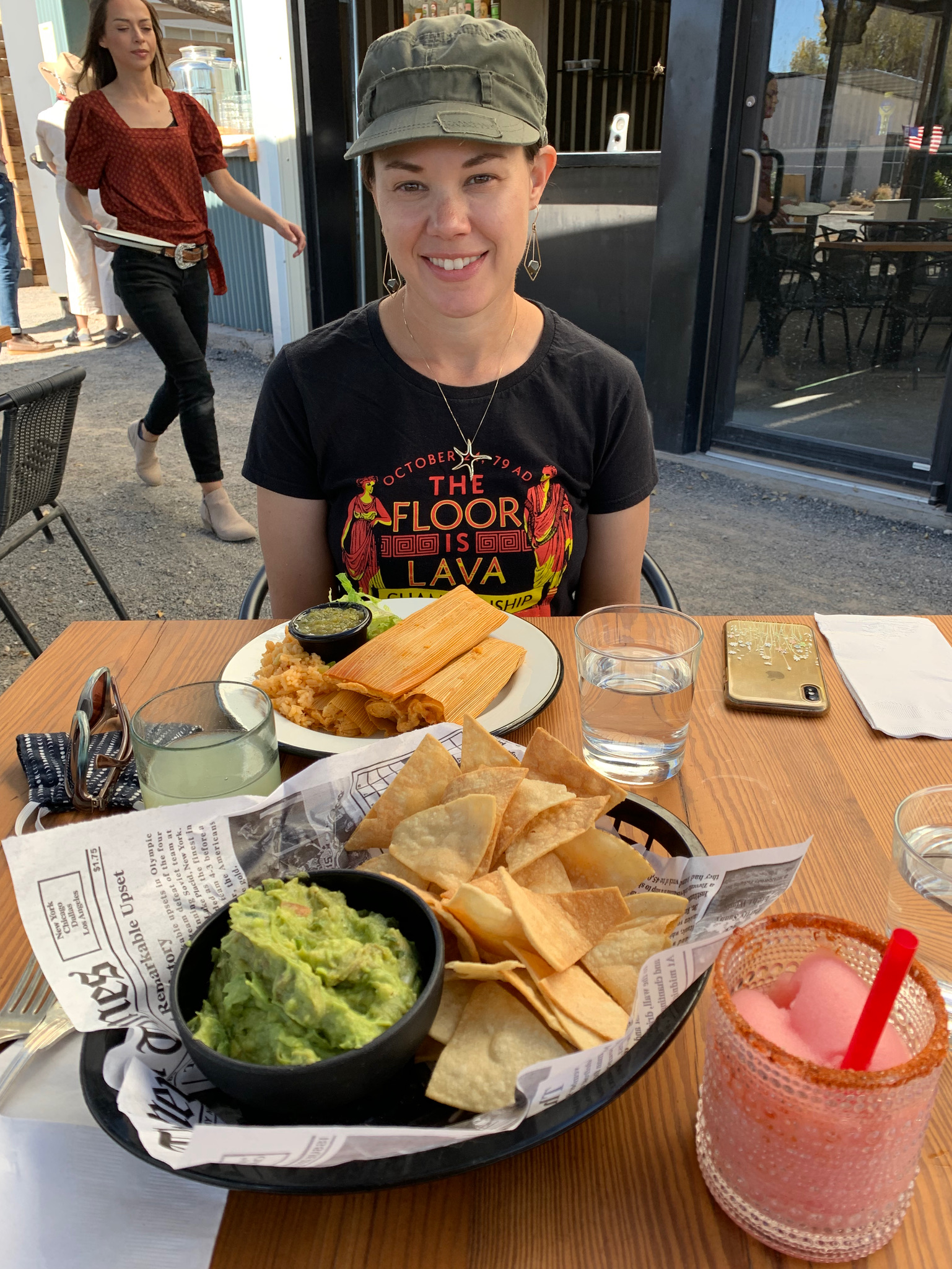 When we got settled, we popped over to a restaurant with some lovely shaded outside seating called Siempre Marfa. They just opened three months ago, and had delicious drinks and food; however, we ordered one drink each, some guacamole and three tamales, and the bill came to over $70. 😲 Inflation anyone? If prices continue to rise, we may need to curtail our eating out more than we have previously. 😬 Regardless, the food and drinks were delicious, the atmosphere was young and vibrant, and I would recommend this establishment.
