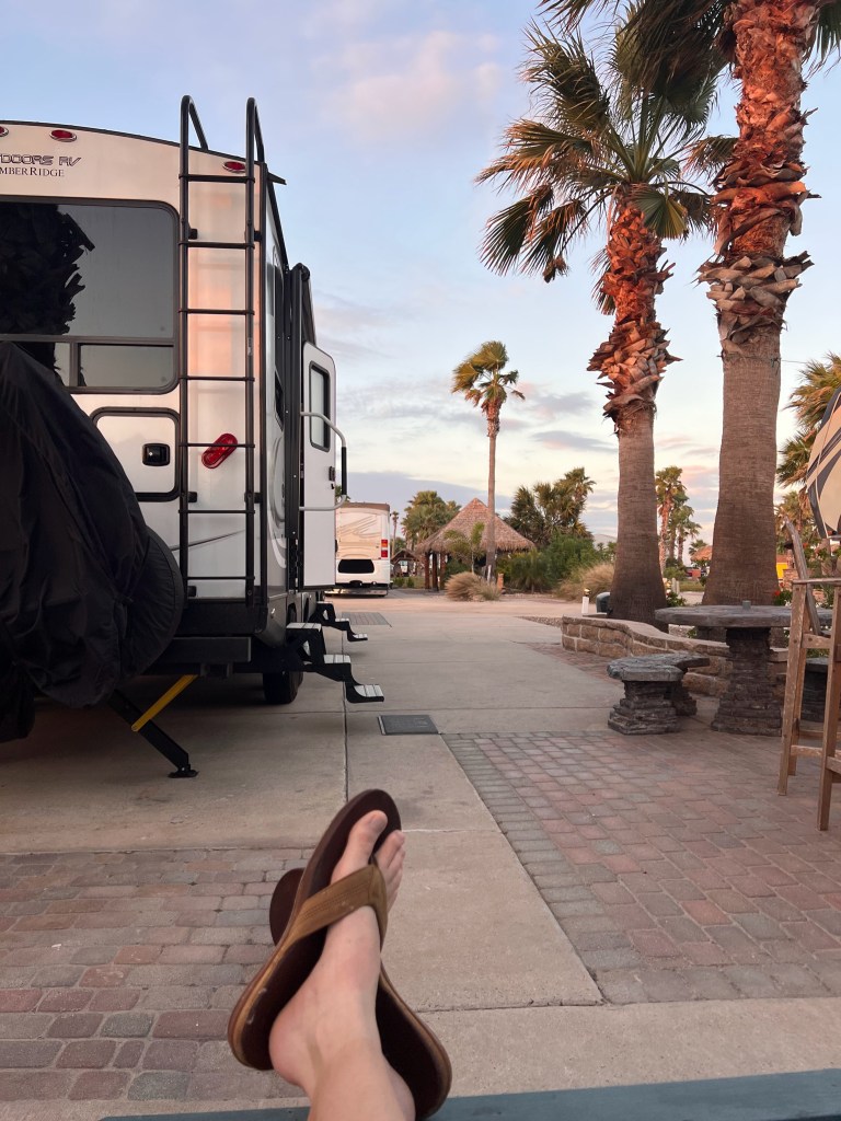 Thanks to the recommendation of my friend Julie, we found availability at Gulf Waters RV Resort to ring in the new year. Although this is one of the more expensive places we have stayed, you get what you pay for! Most of the sites are owned and rented out, so the resort has invested a lot in hardscaping and landscaping, making it a pleasant little paradise next to the beach. There was a plethora of outside seating, a wet bar and mini fridge, and some spots even had palapas and fireplaces.
