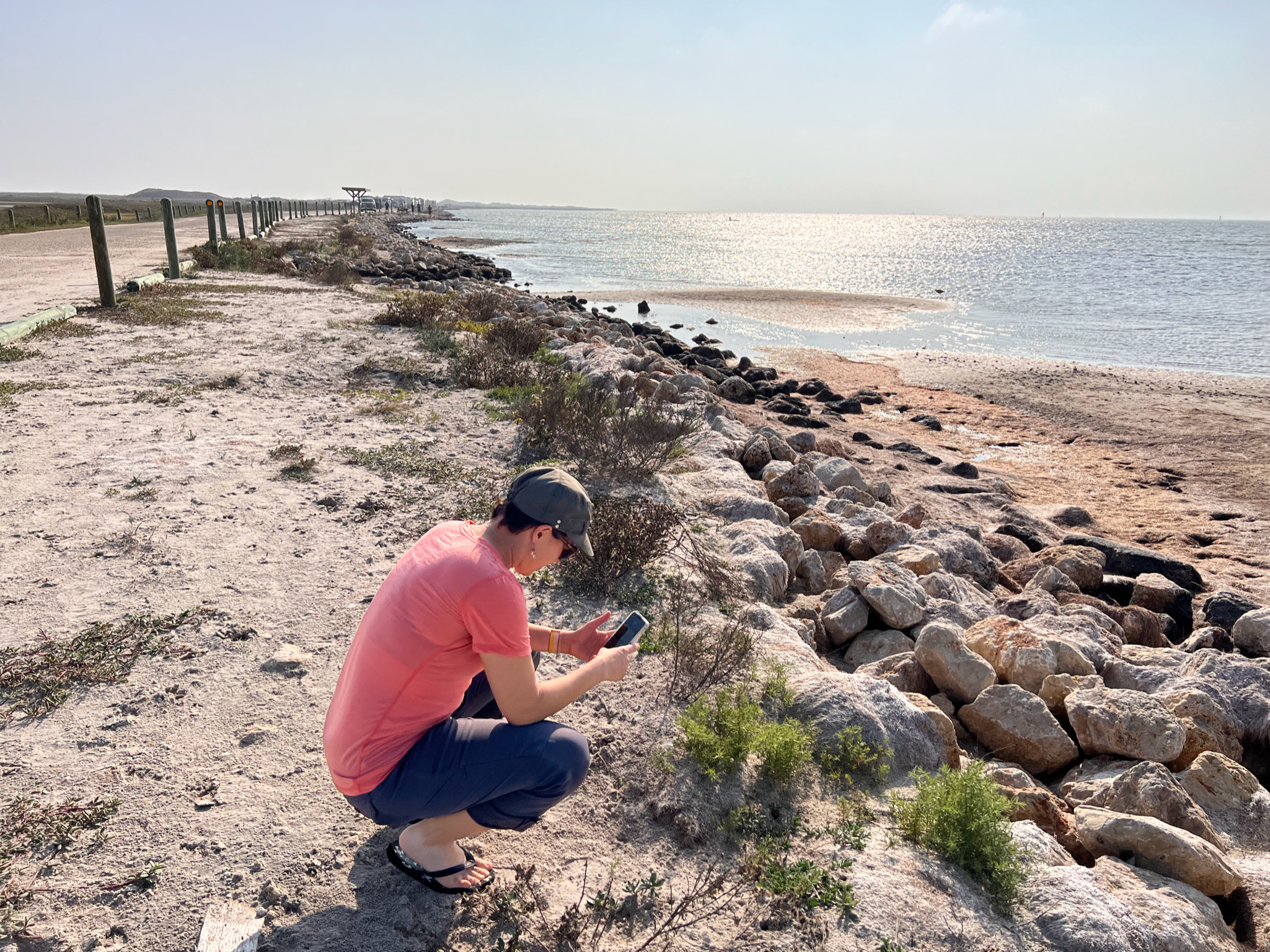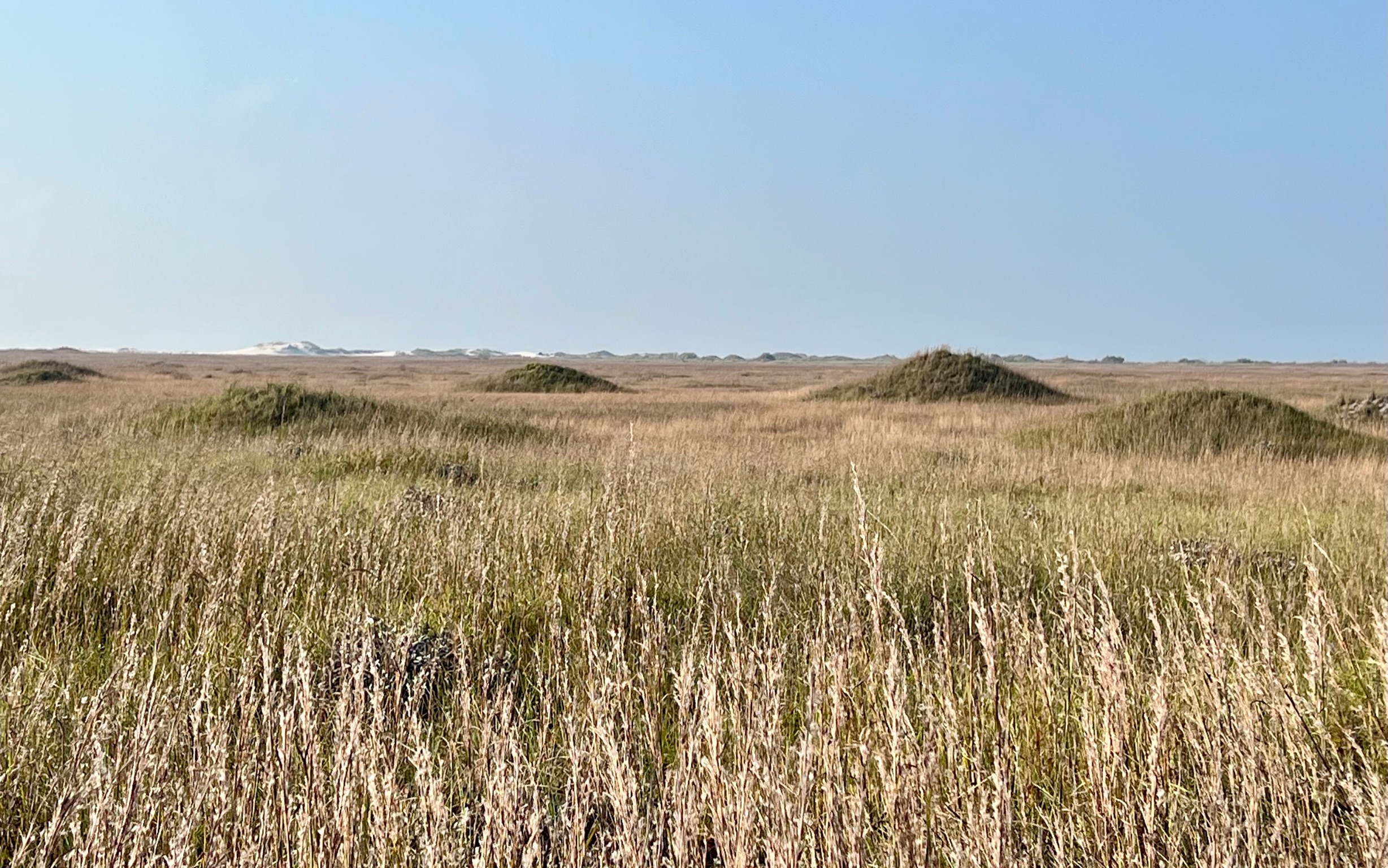 If you visit, another option is to visit the Padre Island National Seashore. We saw RV’s camped out on the beach and enjoyed walking on a small stretch of the 60-mile long seashore that is at your disposal if you should choose to travel the entire shoreline. There are also opportunities to take part in sea turtle hatchling releases, typically from mid-June through August. On the bayside, we saw birdwatchers, and people fishing and kite surfing since is was a windy day. Near the entrance to the park there is also a Grasslands Nature Trail, approximately a 1/2 mile paved loop. We didn’t see much in the way of wildlife, but did find some interesting blooms along the trail and many mounds between us and the bayside sand dunes.