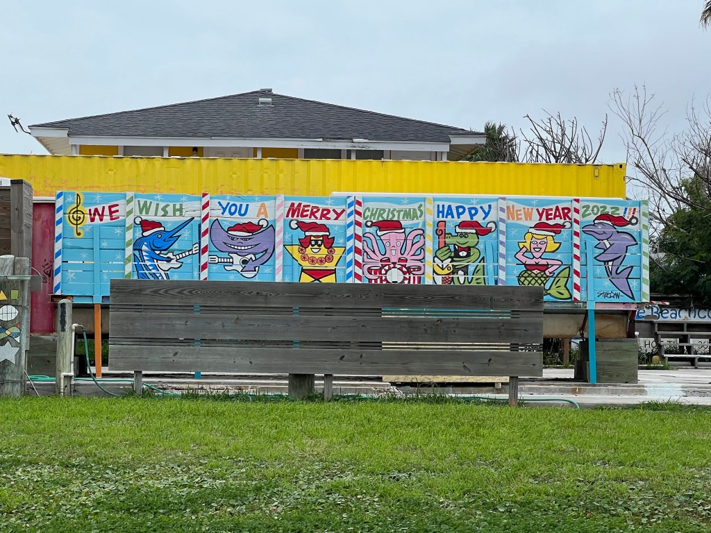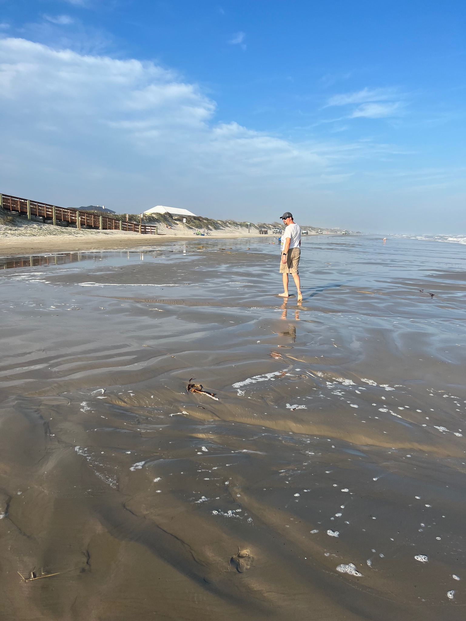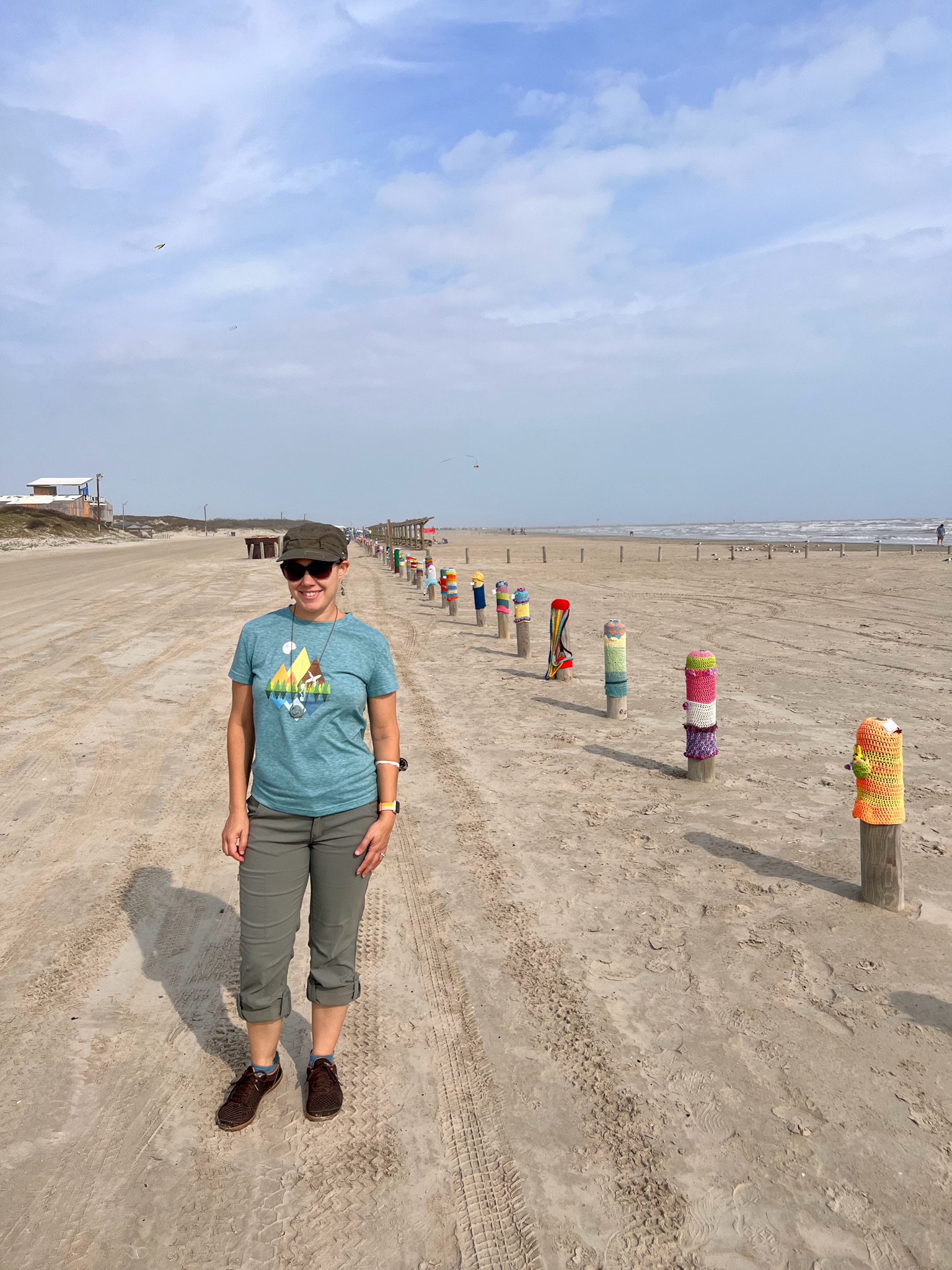 There wasn’t a whole lot of hiking to speak of, but plenty of opportunities for long walks on the beach. On our first and last beach outings, we simply walked from the RV resort, enjoying the breeze as it hugged us with its soft warmth, watching the birds, sand crabs, and people on the beach. I’m accustomed to the wind in the Pacific Northwest, that slaps you across the face with its biting cold, so it was a welcome change. 😂 On the second outing, we discovered an unexpected and delightful surprise: Bollard art! We talked with one gentleman, who told us the back story.