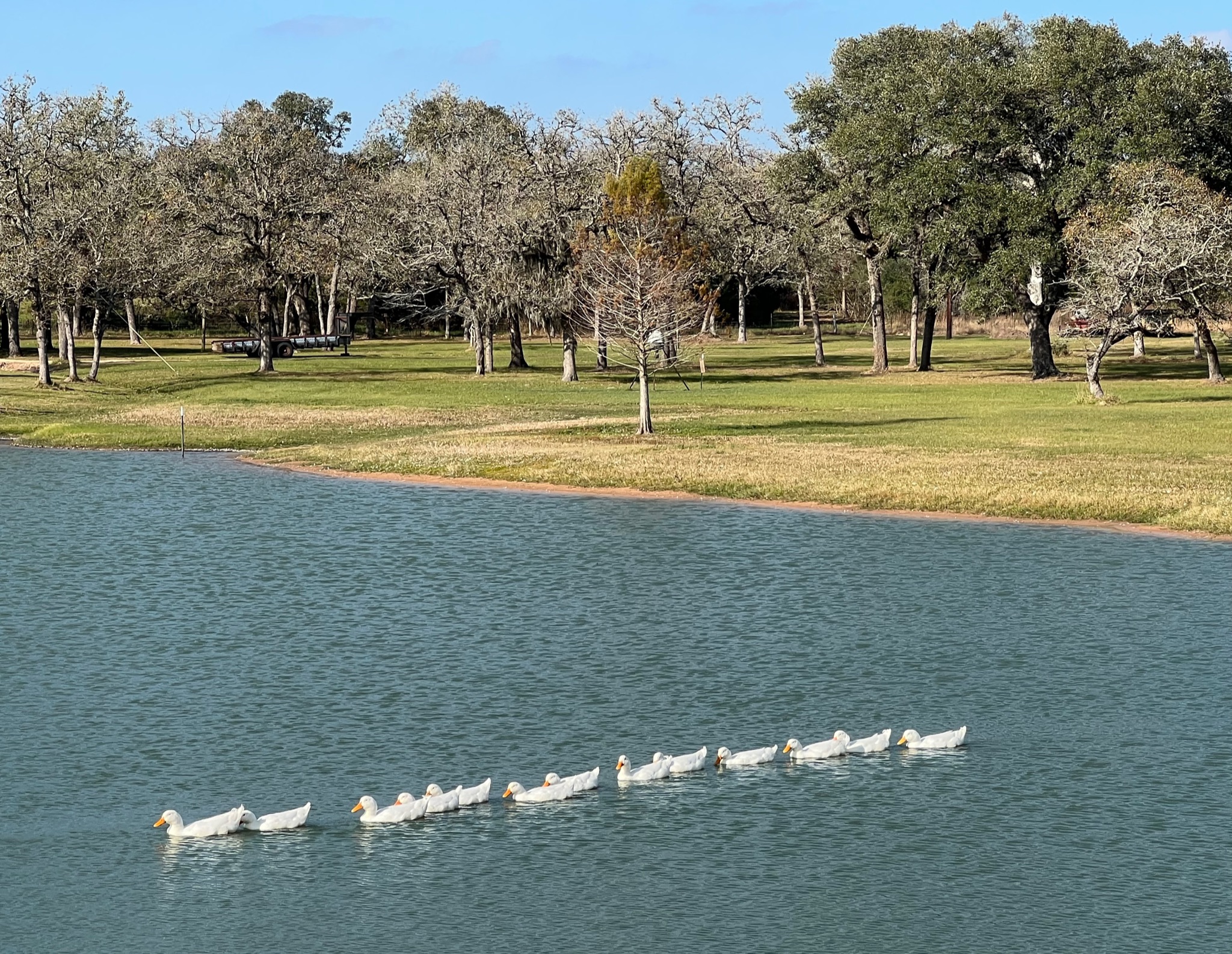 Our reservation in Port Aransas didn’t commence until December 27th, so we had a gap day during which we needed a place to stay. Thankfully, Harvest Hosts came through with a place called the Whistling Duck Winery. Though they were not open for business that day, they welcomed us warmly. It was another unseasonably hot day, so we walked around their duck pond and enjoyed the beautiful scenery. Their slogan is “Porch Sittin’, Wine Sippin’, Country Trippin’ – FUN!” Though we did not do a wine tasting, they have both inside and outside seating to enjoy a glass of wine or two, so their slogan seems appropriate and we recommend swinging by if you are passing through this part of Texas.
