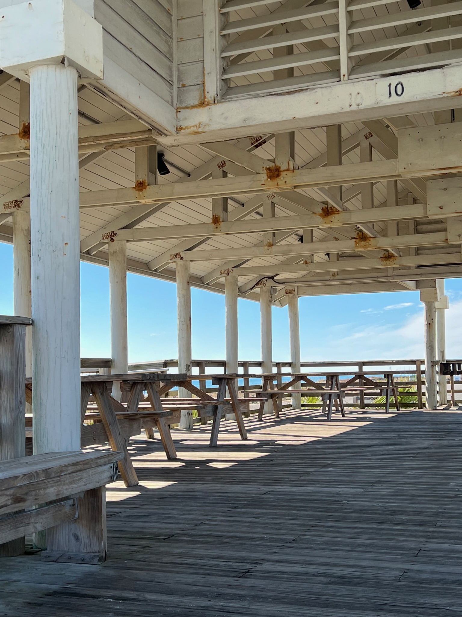 This natural landscape is juxtaposed with condominiums, beach houses and strip malls surrounding it, and offers a campground, playground, boardwalks to the beach, and a 3/4 mile nature trail.  You can picnic, swim, fish, walk the beach or even have your wedding here.  Because it has been unseasonably cold, the sand was chilly, but it was still nice to feel the soft, white sand under my bare feet.  The wind was really strong that day, and with a surf advisory in effect, we decided to head back indoors to warm up.