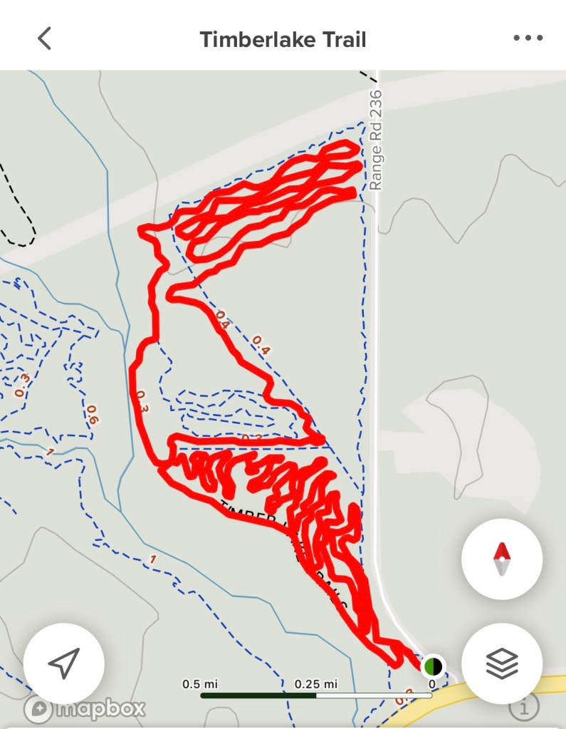 As we headed back to the trailhead, we decided to extend our hike by heading to Timber Lake, where we did see more foot traffic and a few cyclists.  The lake has picnic tables surrounding it and is accessible by an unmarked dirt road as well.  We stayed for just a moment before heading back since it was getting late and our feet were tired.  We enjoyed our little hike and I recommend it if you are looking for an outdoor adventure that isn’t on a beach. 🍃🍄