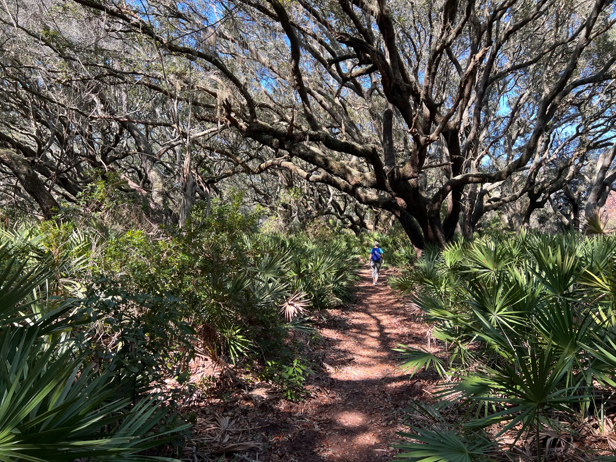 As we checked out a trail that spurs south from the mansion, we saw thousands of tiny fiddler crabs, which I tried fervently to avoid crushing. There wasn’t much to see on the trail, so we started to head back, and Matt suggested we take a shortcut along the shoreline to get back to the docks instead of using the trail we came in on. Well, that shortcut turned into a whole other adventure!