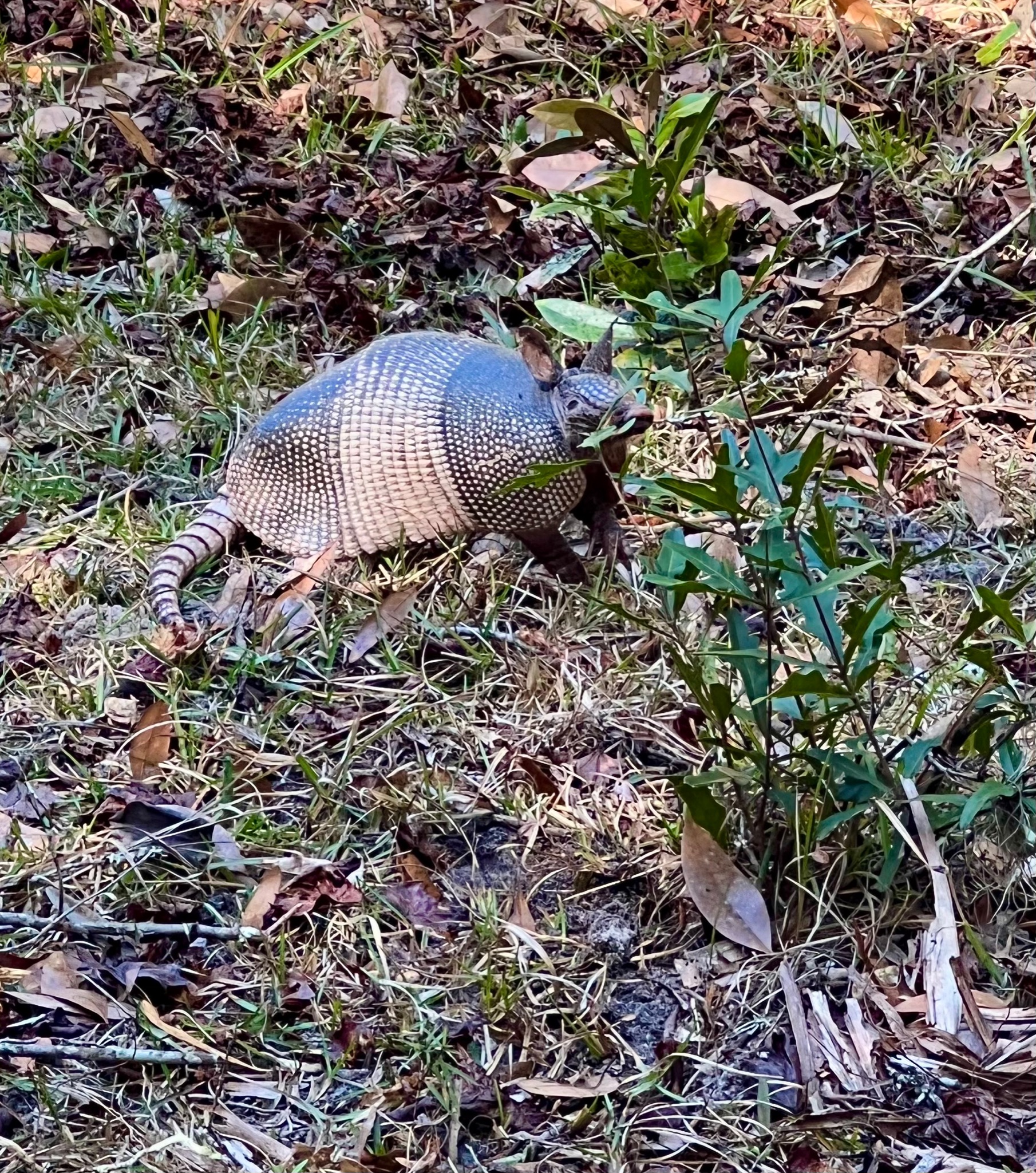 Thankfully, by this time our shoes and socks were dry. Hurrah! We were pretty tired from walking in flip-flops for 5 miles, so were relieved to have our cushy shoes again. I was also surprised at how clean my dry fit pants and shoes looked after being caked in mud. From here, we opted to do one more small exploration along the Nightingale Trail, where we saw several armadillos digging for food. These little guys are nearly deaf and blind, so they bumble along and are pretty hilarious to watch. When we got to the main north/south road, we walked up toward the Sea Camp one more time and then trudged toward the northern docks. We were exhausted!