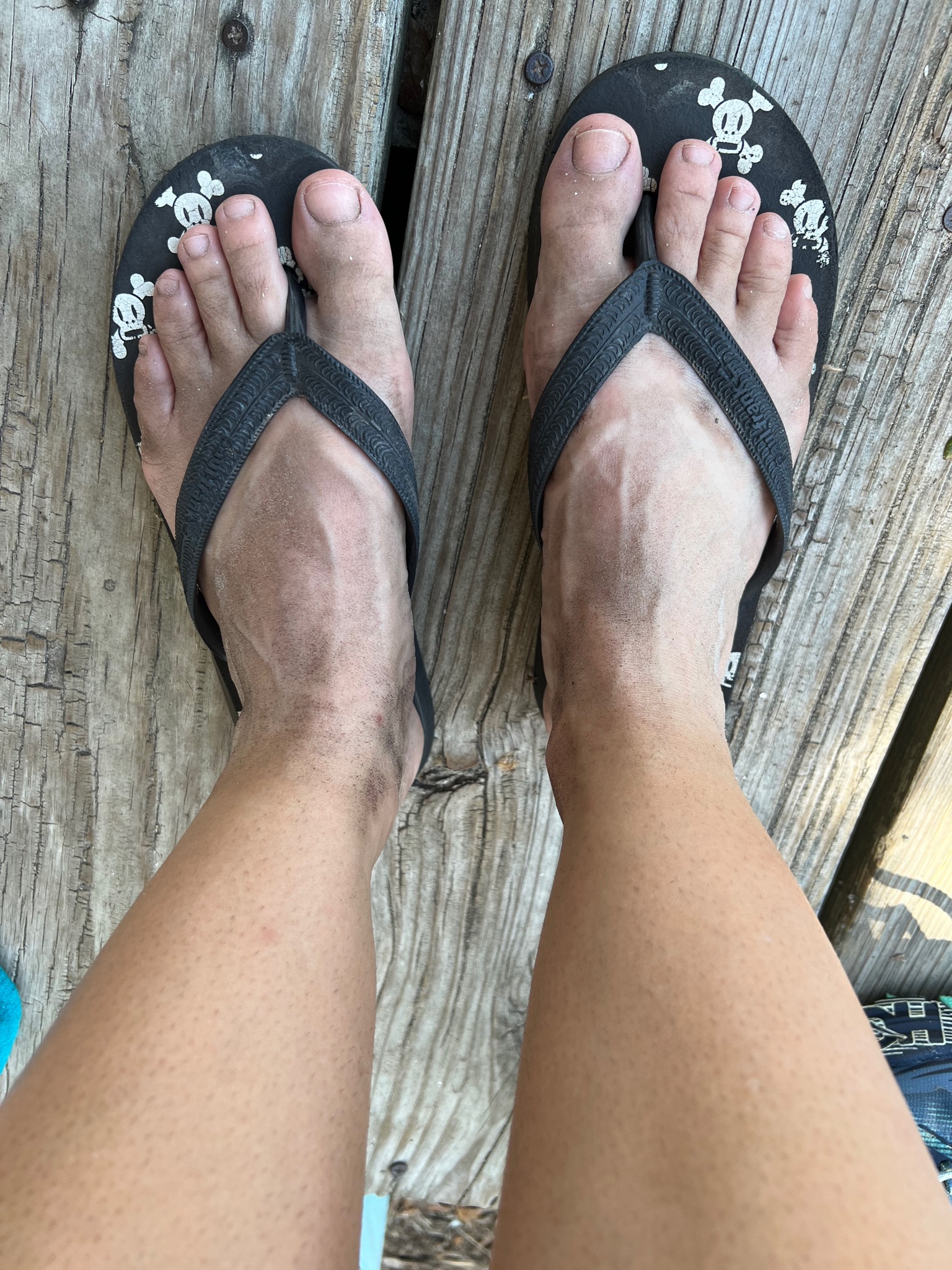 It was only 10:30am, so how was I going to continue for another 6 hours like this?!? I was stunned and in disbelief of what just happened and stomped furiously toward the docks. 🤬 Matt had to find his own way back. I flagged down a man in a truck, and he pointed out a water spigot that was thankfully right behind me, so I got to work scraping off the thick layer of mud from my shoes, socks and pant legs. I went into the bathroom to wring black water out my pant legs into the toilet and roll them up. Yuck!