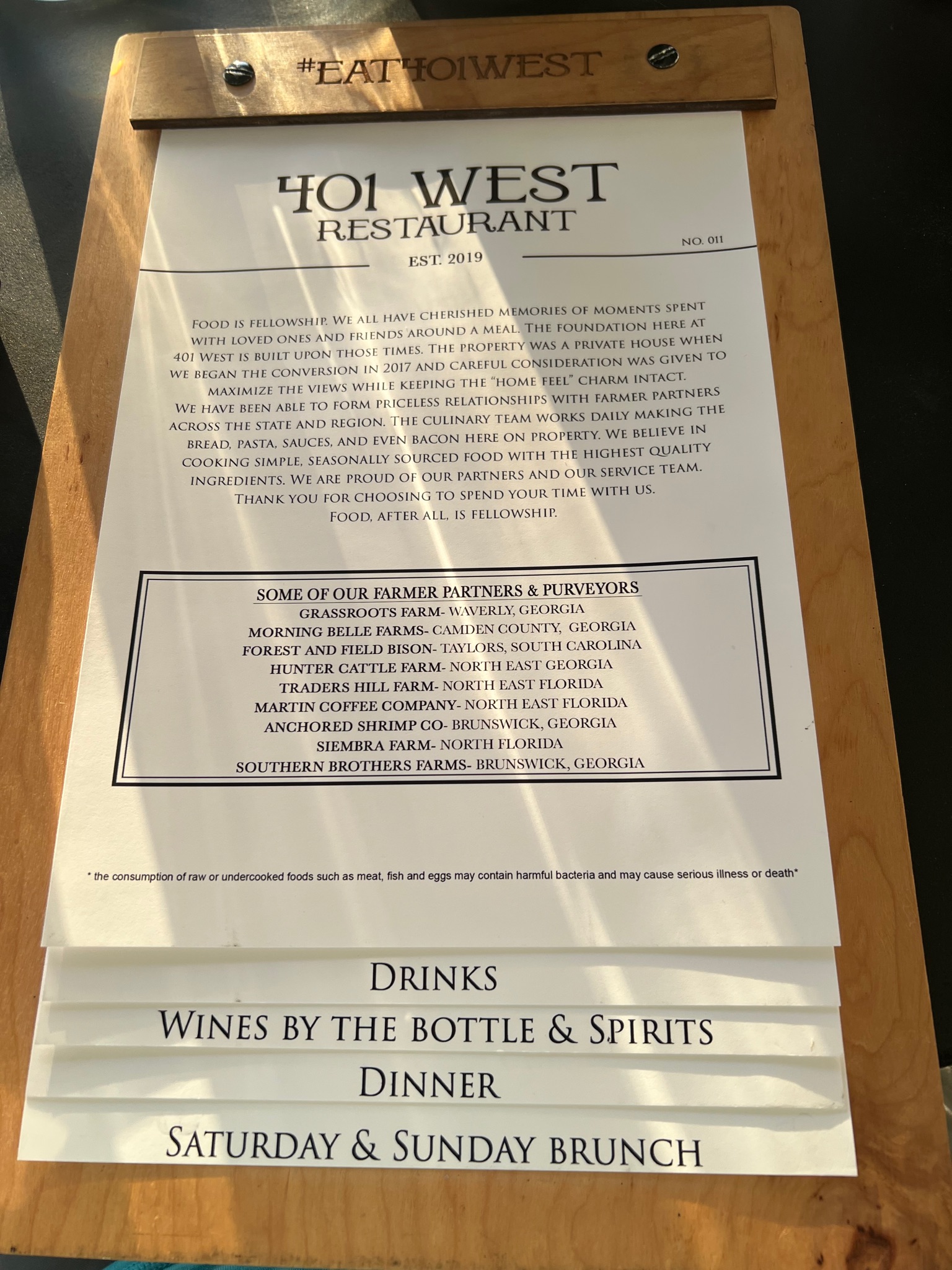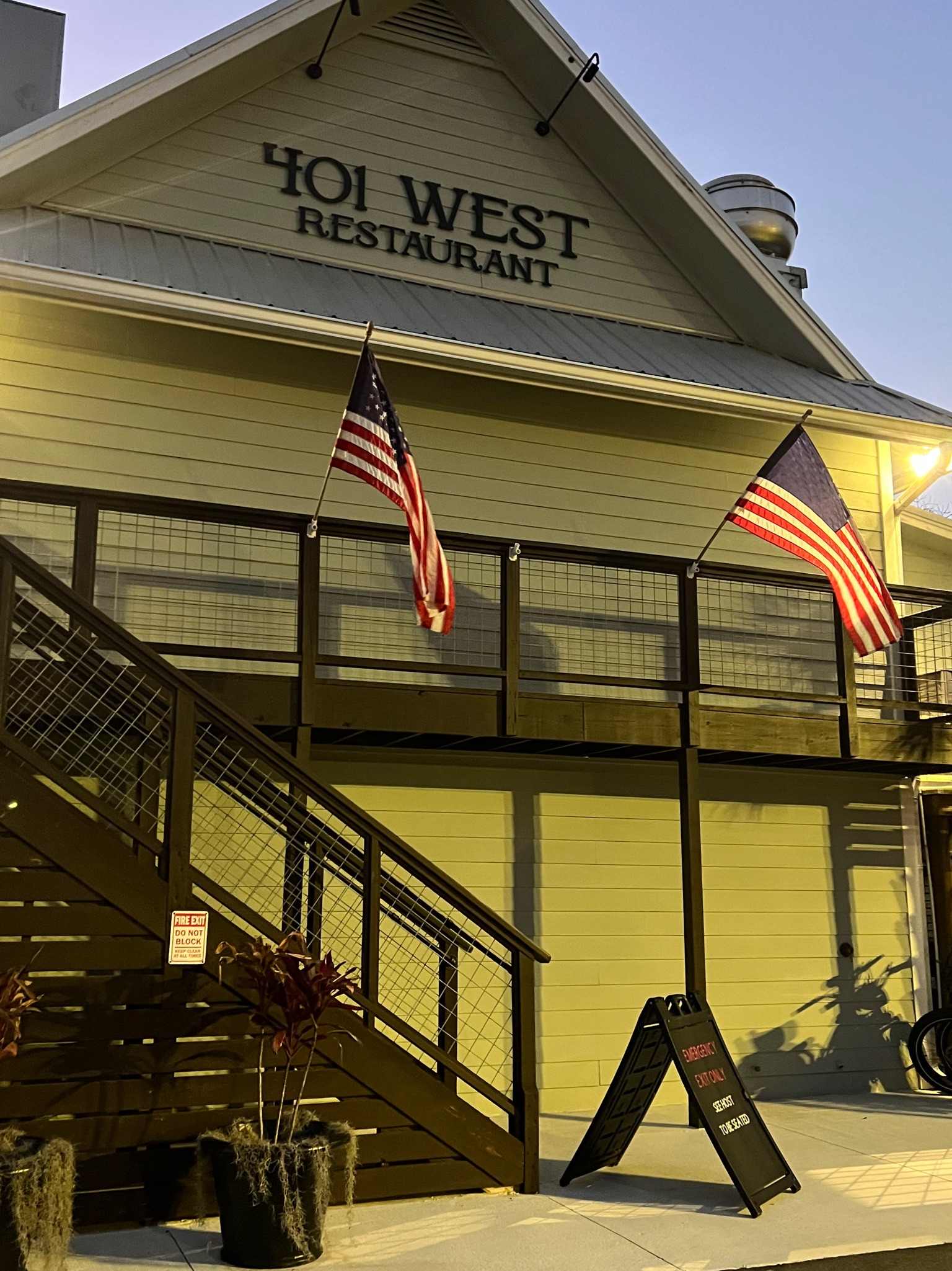 Finally, we were back in Saint Marys, but tired and hungry. We dropped our packs back at the truck and wandered over to the 401 West Restaurant for a sunset dinner. It’s first come, first serve seating, and they have stages on one side of the building for what we assume are live outside performances. They make bread daily, and the food was delicious! Yes, we were hungry, but it really was some of the best food we have had in quite a while.