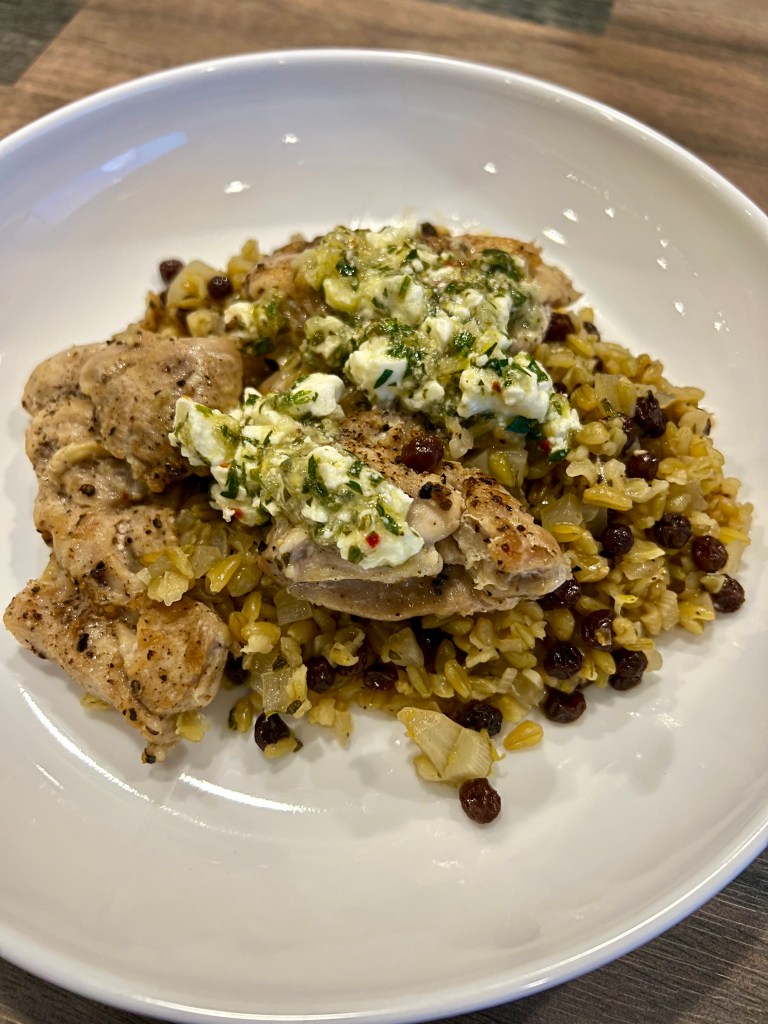 This dish from Food and Wine turned out better than expected. I finished off our dried currents in place of the golden raisins, but left the rest of the recipe the same. The freekeh took a lot longer to cook than the recipe indicated…more like 30-40 minutes, despite soaking the grain for an hour beforehand. Otherwise, everything turned out great. The feta lemon relish gave this dish the finishing zip that it needed to balance the sweet and smoky flavors of the freekeh and currants. I loved it and will be making this again.