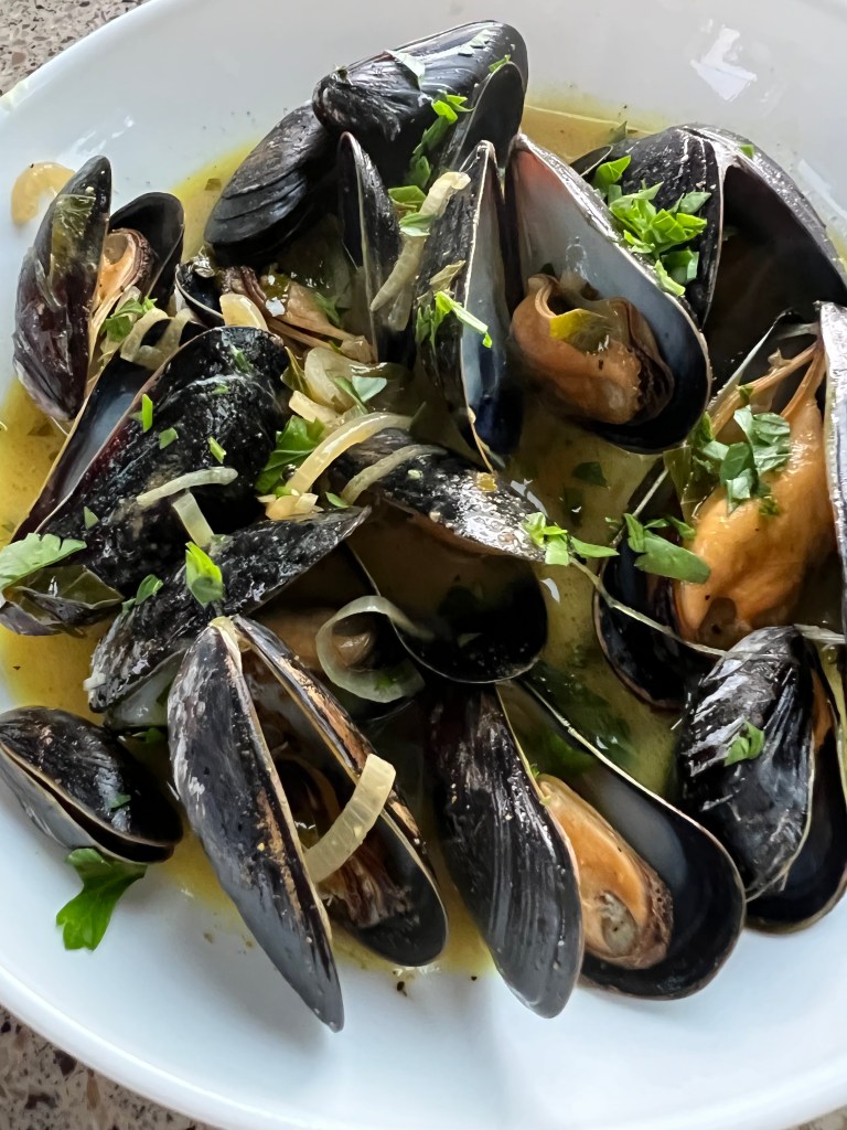 We only ended up with 1 mussel that didn’t open, the rest were nice and tender, and the broth was so delicious, with both creamy and tangy notes coming through. If you get your hands on a bunch of fresh mussels, give this recipe a try and let me know how you like it.
